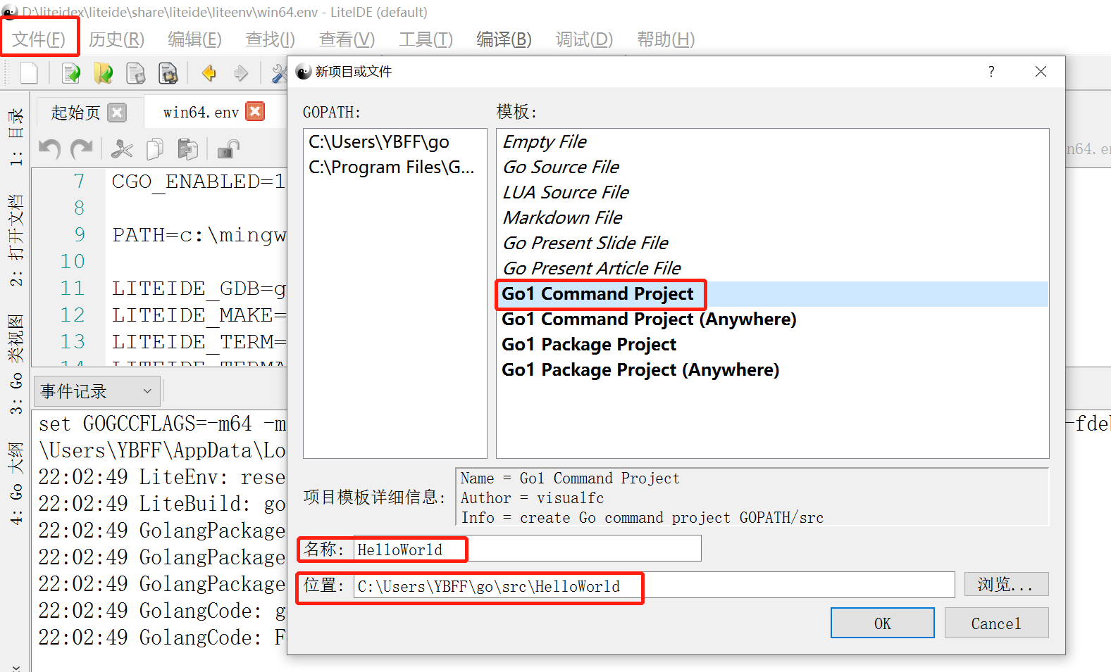 点击文件,弹出来弹框里面选择新建,选择GO1 Command Project 即可