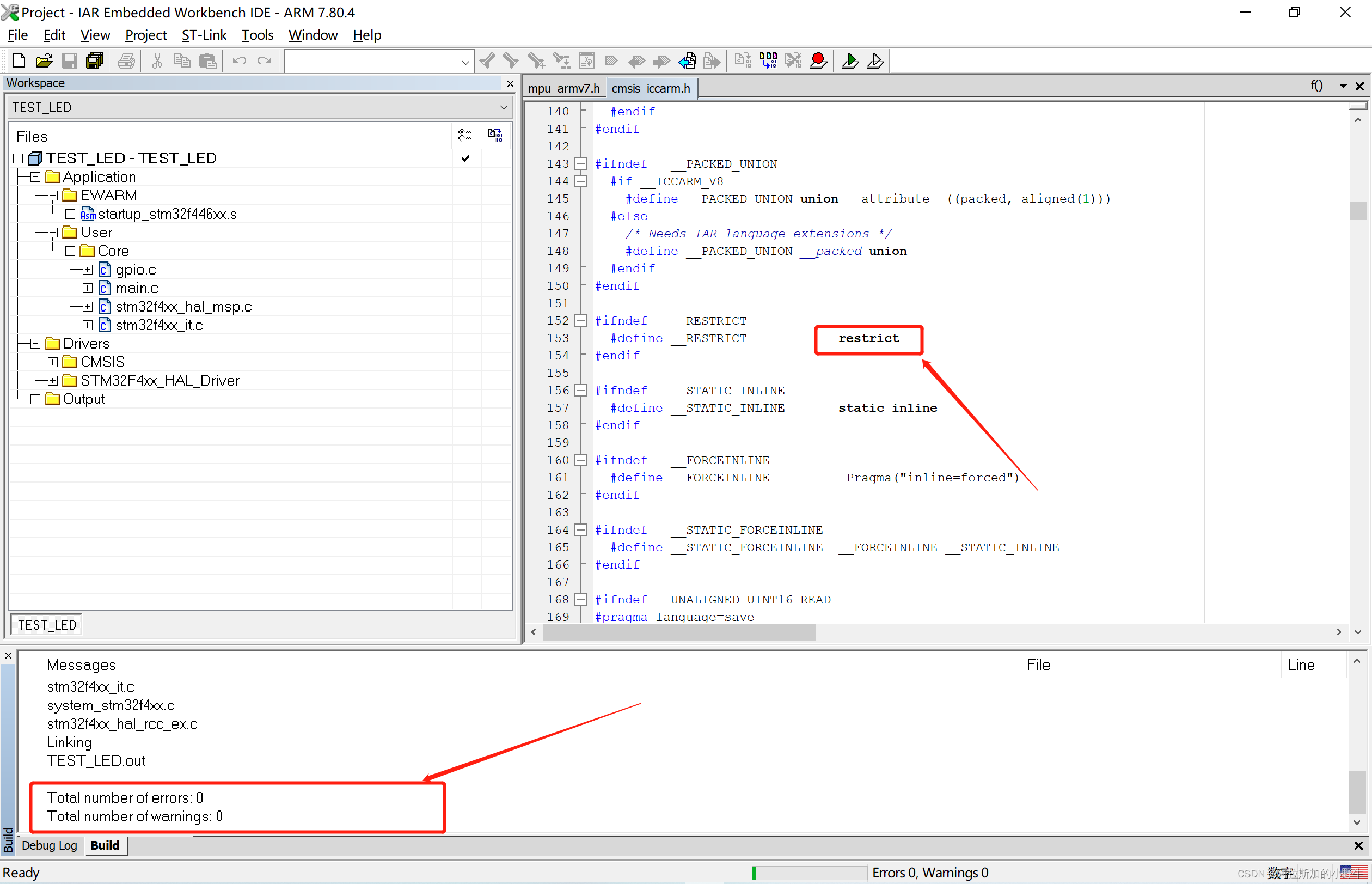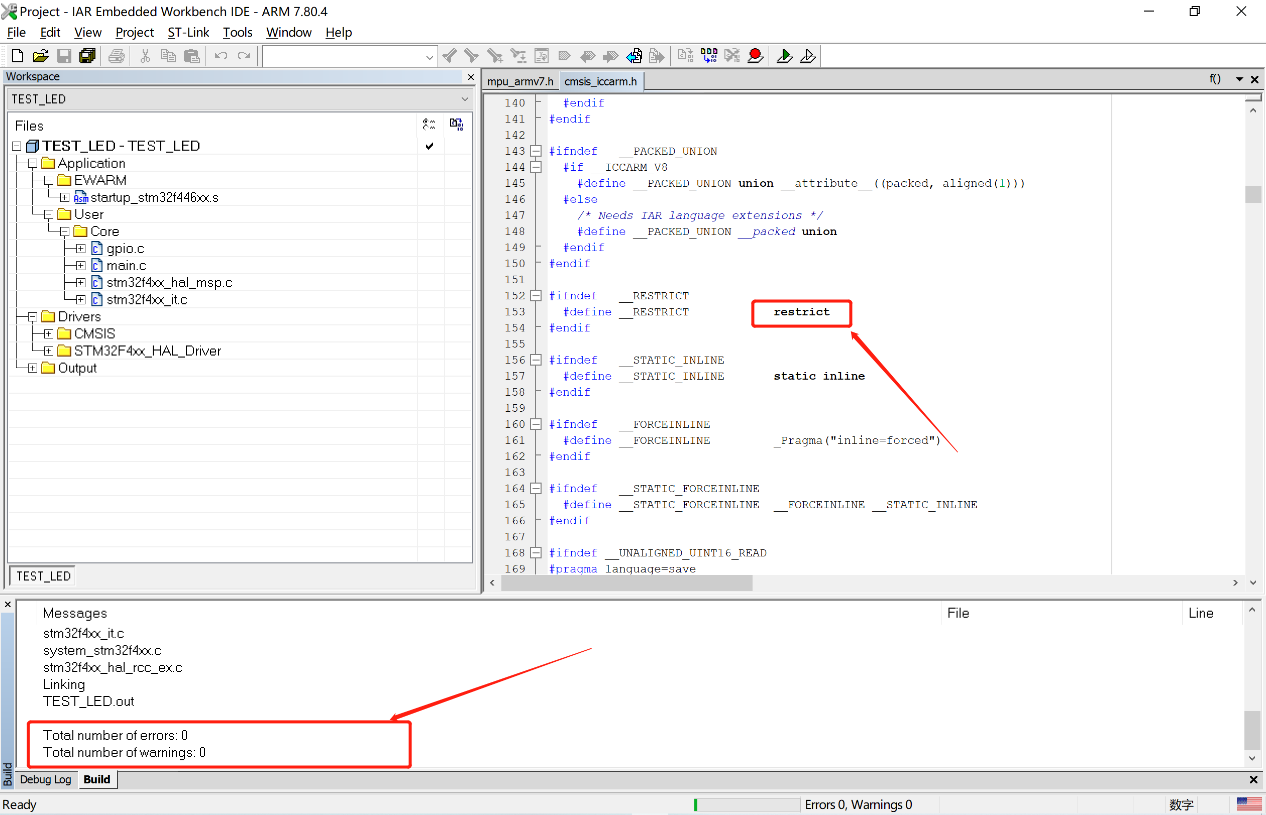 再次编译可以看到状态栏显示 0 error 0 warning。