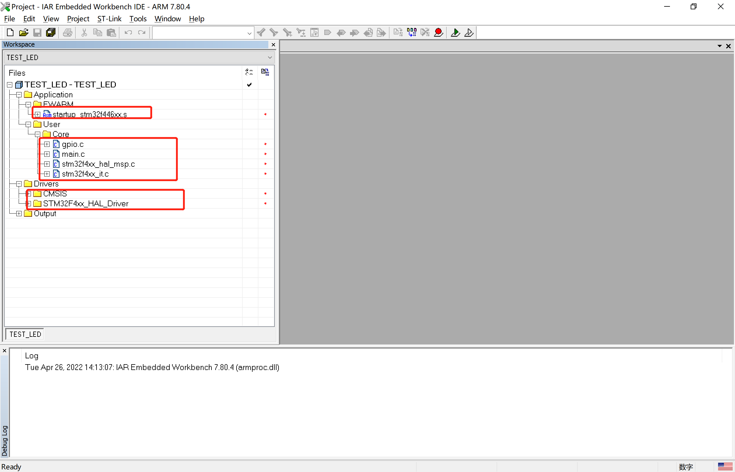 10.工程分为三部分,主要包括启动文件/应用文件/内核+HAL文件