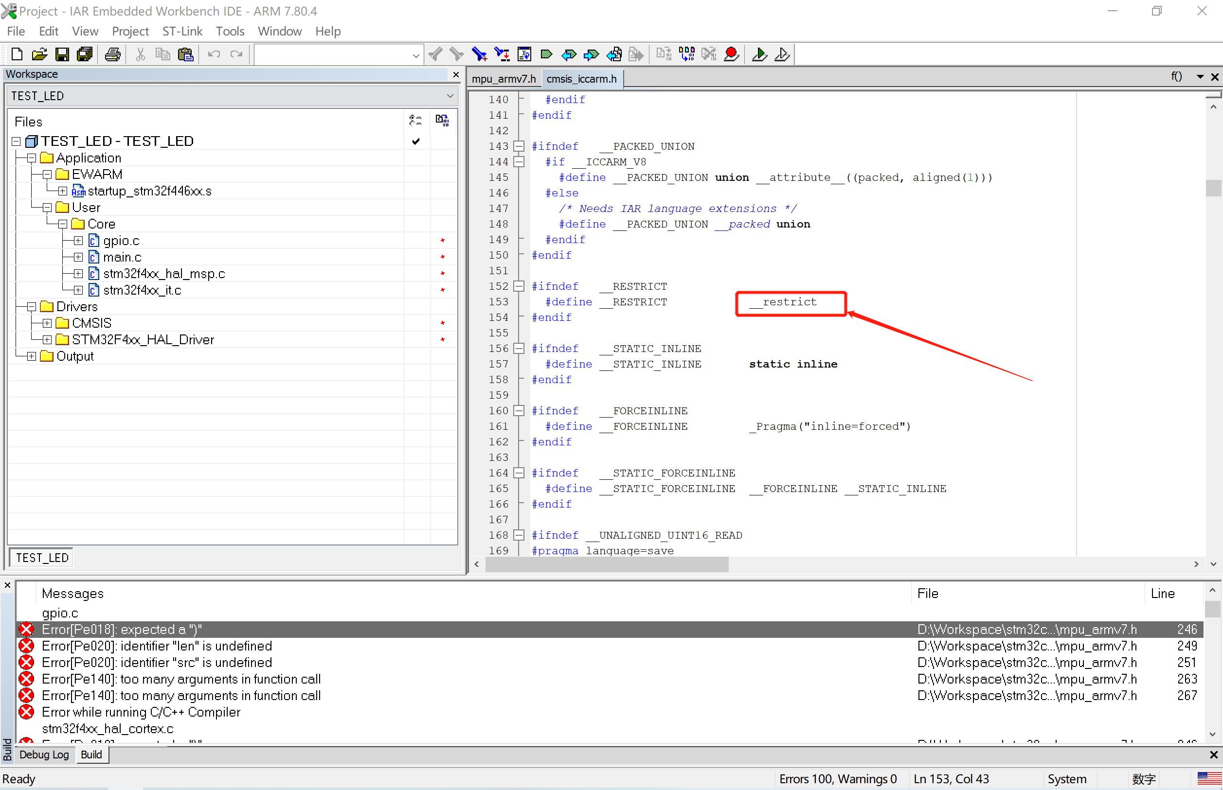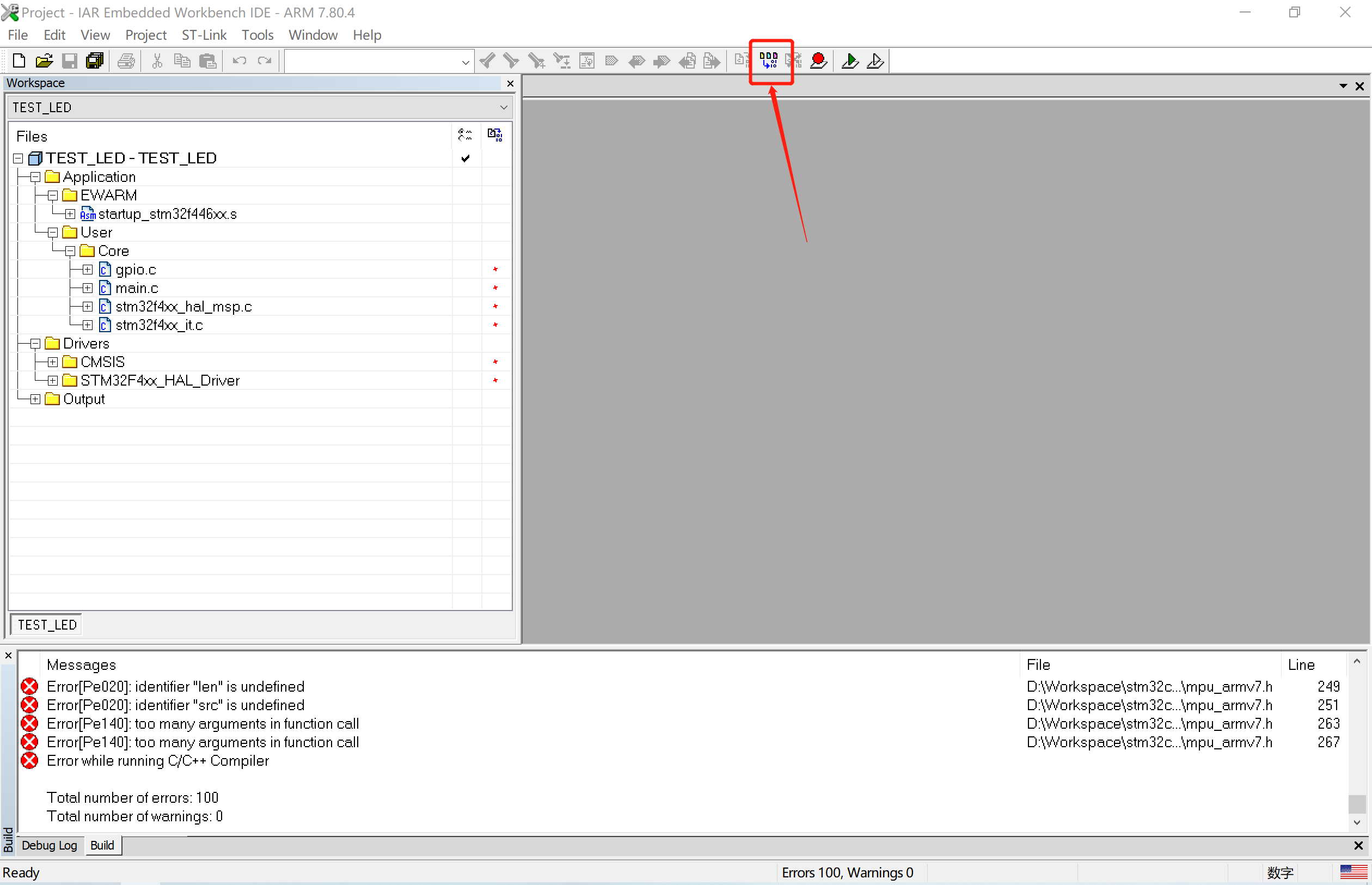 点击下图图标编译工程,在状态栏有100个error,肯定是系统文件出问题了