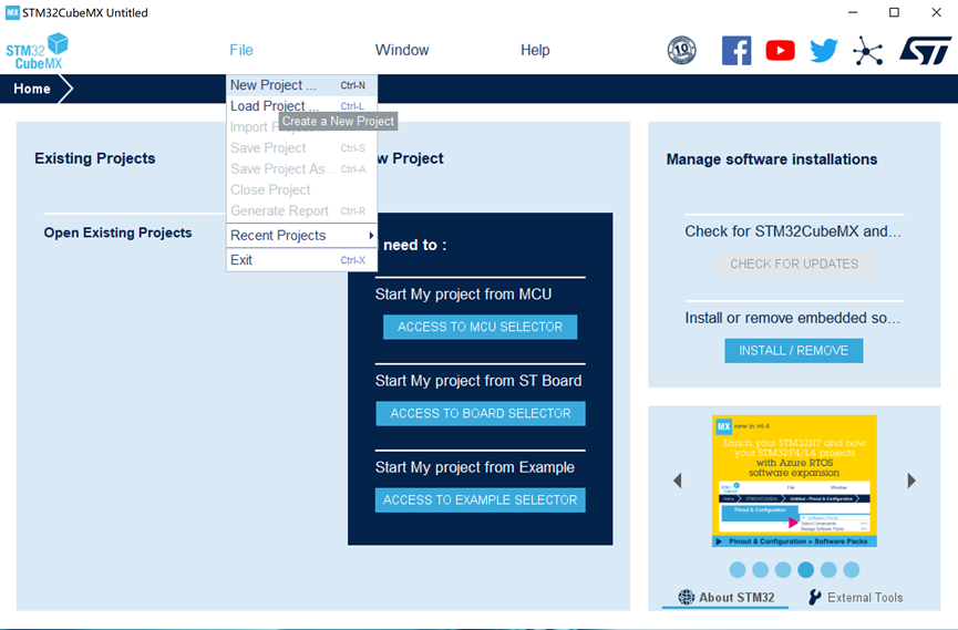 第一章我们讲述了如何安装和配置STM32CubeMX软件,这一章我们来说说如何简单的使用STM32CubeMX软件。