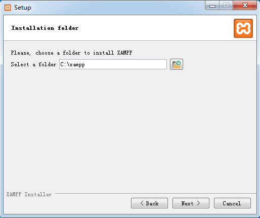 (3).xampp安装路径的配置,默认c盘,如需修改,选择自己想要安装的路径,点击next。