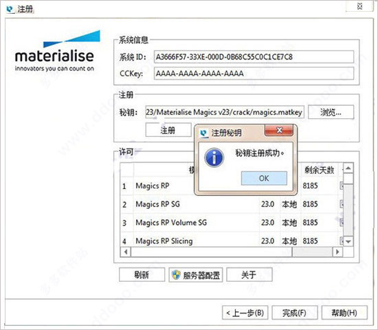 15、完成后,点击浏览,载入修改后的magics24.matkey许可并点击注册;