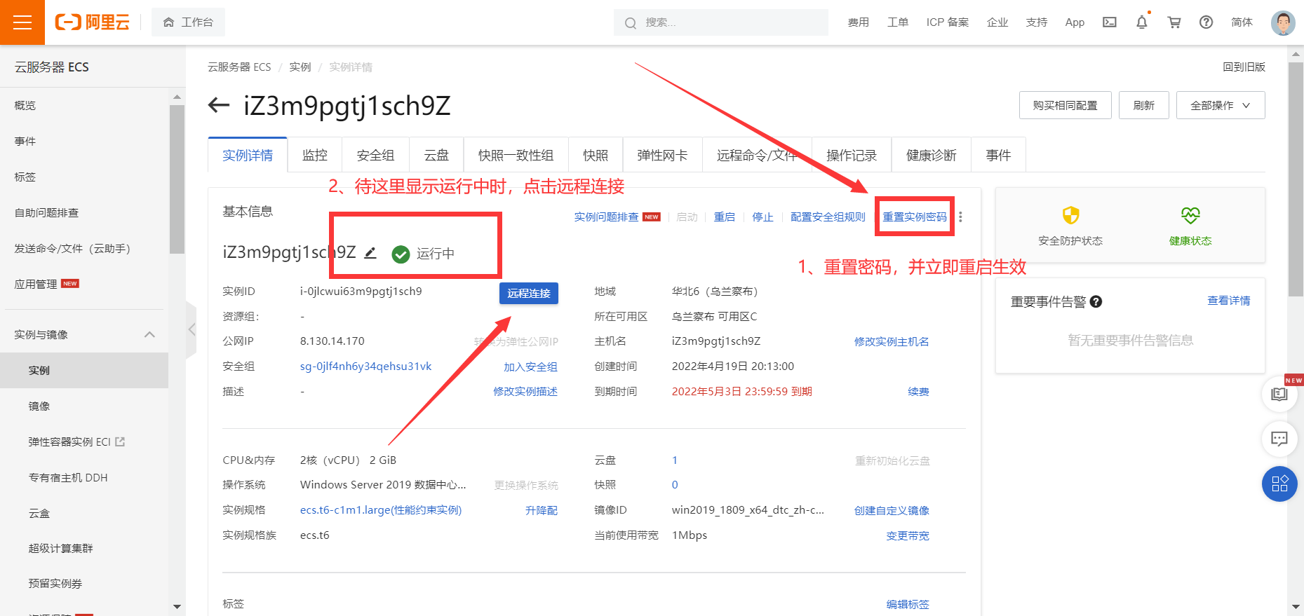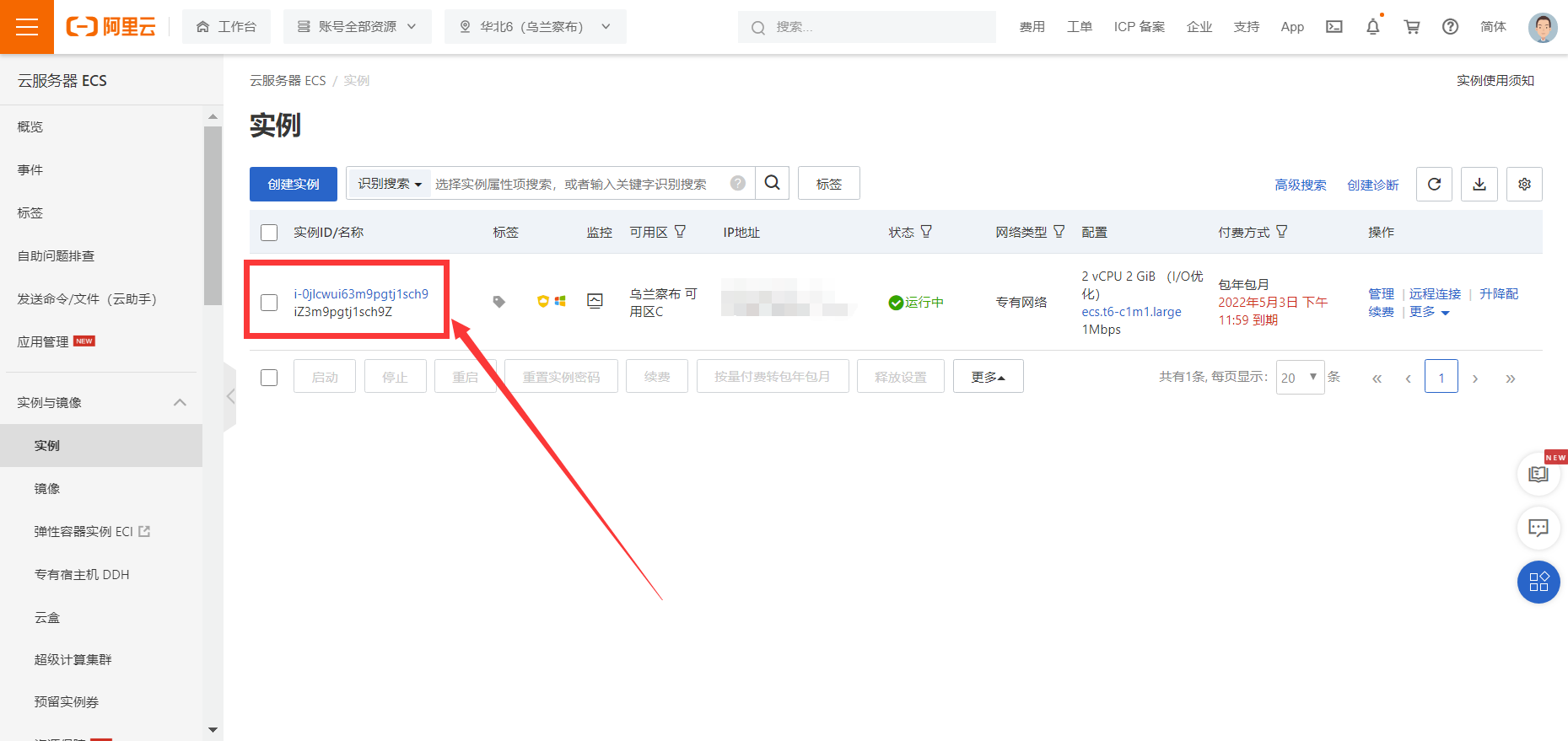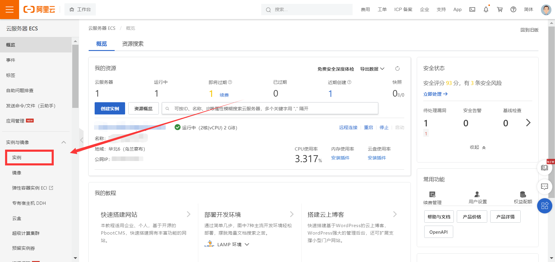 Step3:点击实例,【如果实例界面空白可以调整一下上面的地域选择】