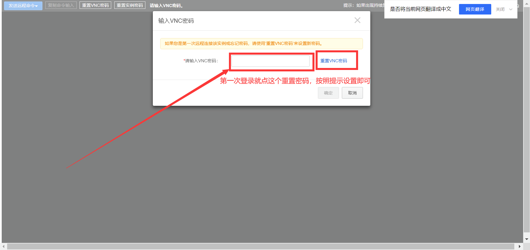 Step4:重置密码后远程连接,这里的密码就相当于电脑的开机密码,即用户登录密码 。之后使用VNC进行远程连接