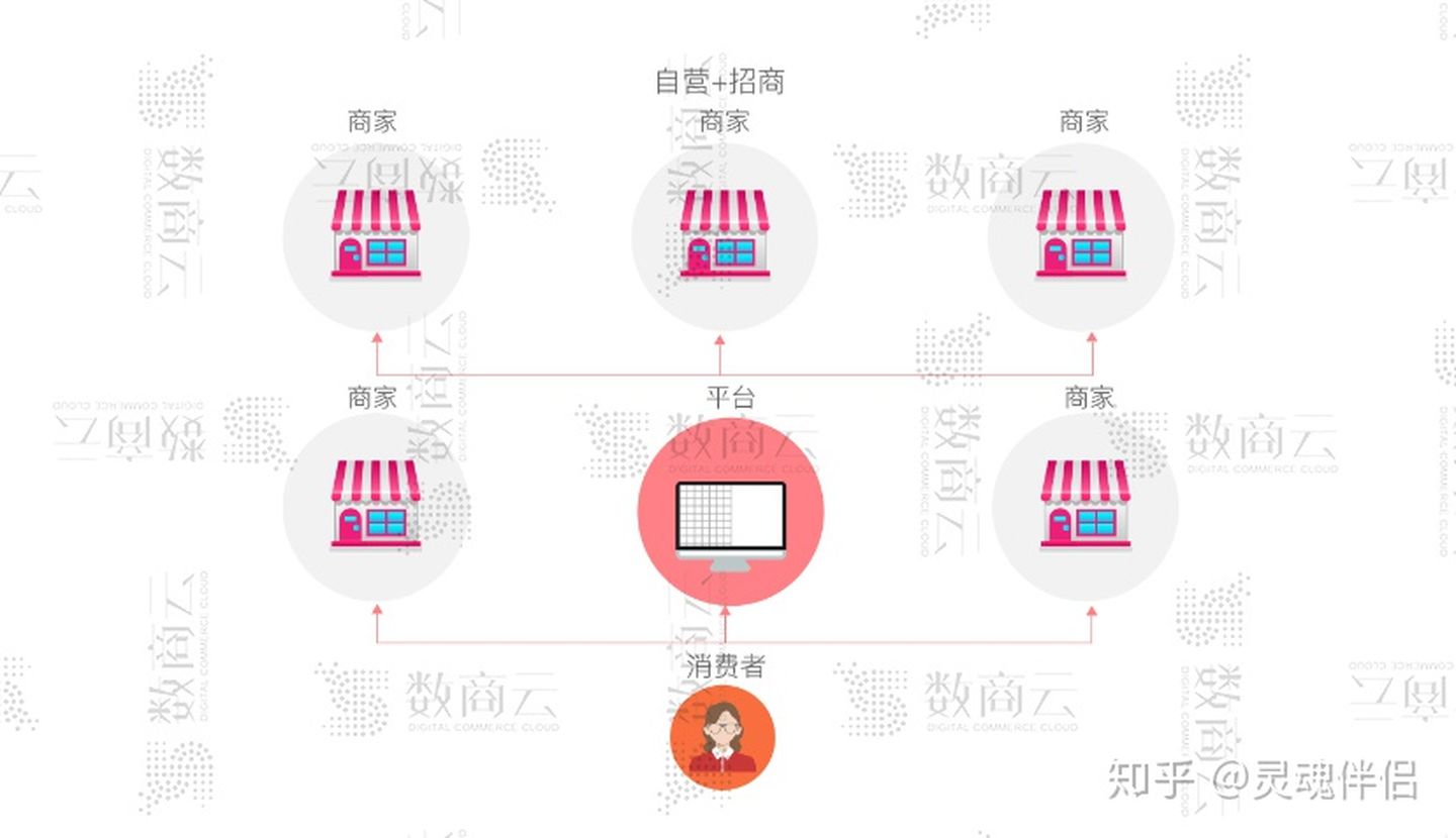 一般为自营+联营+招商等模式,B2B2C电商商城平台建立线上商城,整合自身多渠道业务, 而多方渠道供应商以加盟签约形式入驻B2B2C平台。