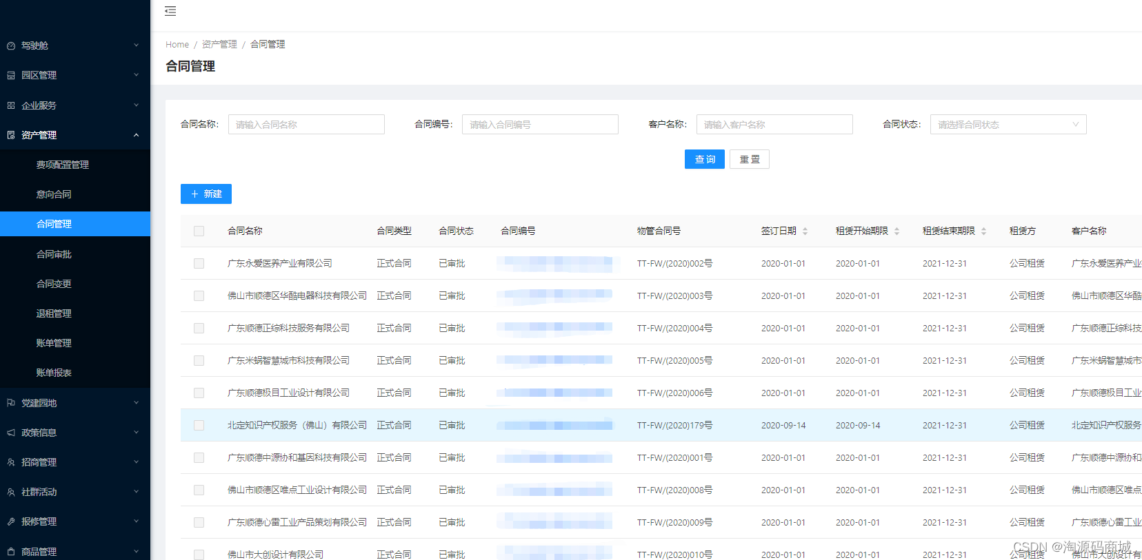 意向合同:负责登记对园区的房间有意向的客户登记配置管理。