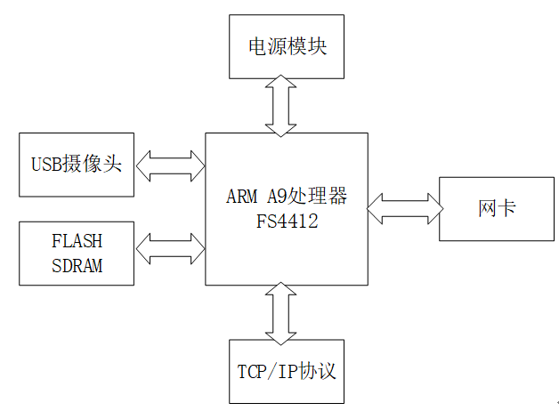 下位机选择了FS4412开发板,FS4412的主频可以达到1.4~1.6GHz,处理器采用Exynos4412, 该处理器是三星比较新的一款ARM Cortex-A9四核CPU,采用广受欢迎的ARM MPCore技术兼容[10]。ARM的成本低,效率高,最主要的是它能够运行Linux操作系统,方便对ARM的开发,能够编写TCP服务器程序完成网络通信。