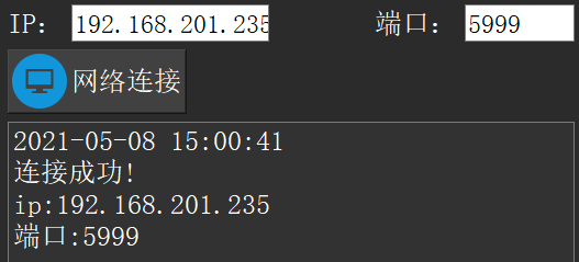 在登录系统成功后,为完成接收下位机监控视频的功能,我们需要连接下位机TCP服务器,网络管理在数据管理界面的右下部分。下位机服务器正常运行后,输入下位机对应的服务器的IP和端口号,点击“网络连接”按钮,没有问题即可连接成功。若服务器未运行,点击按钮则不会有反应,若服务器运行异常,则登录失败。