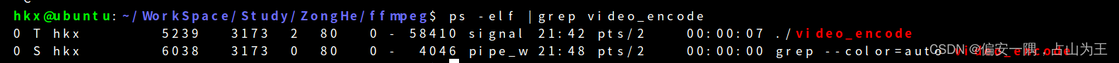 0 T hkx 5239 3173 4 80 0 - 58410 signal 21:42 pts/2 00:00:07 ./video_encode