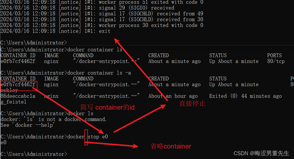 docker logs <container_id>命令来查看容器的日志。在这种情况下,使用容器ID的简写形式通常足够。和其他容器相关的命令:当需要在容器之间进行交互或执行其他和容器相关的命令时,可以使用容器ID的简写来引用相应的容器。