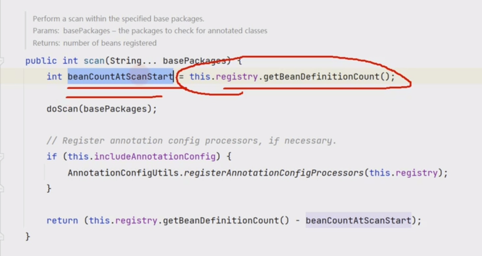 再用当前容器有多少个bean再减去之前的bean,就知道扫描出了多少个bean