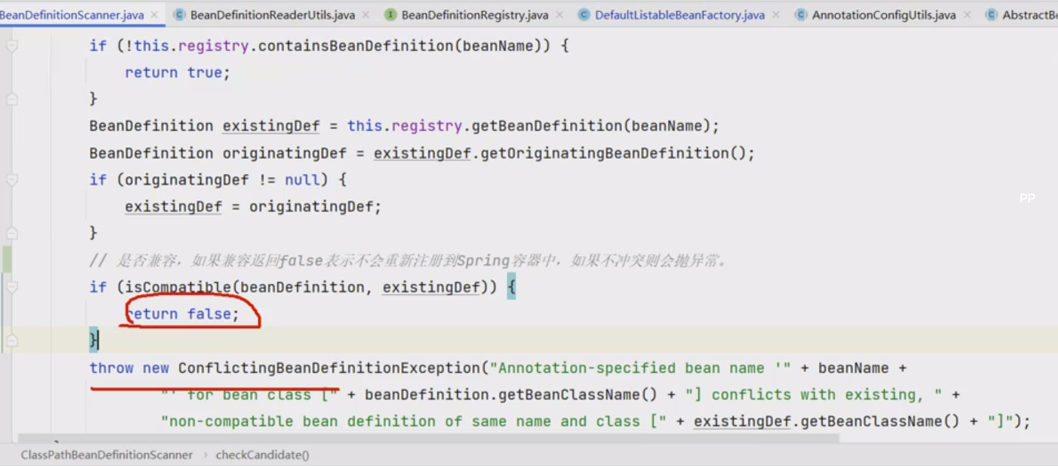 会去判断Resource是否相同,因为2个BeanDefinition肯定不同,但对应的是同一个类就认为是兼容的。