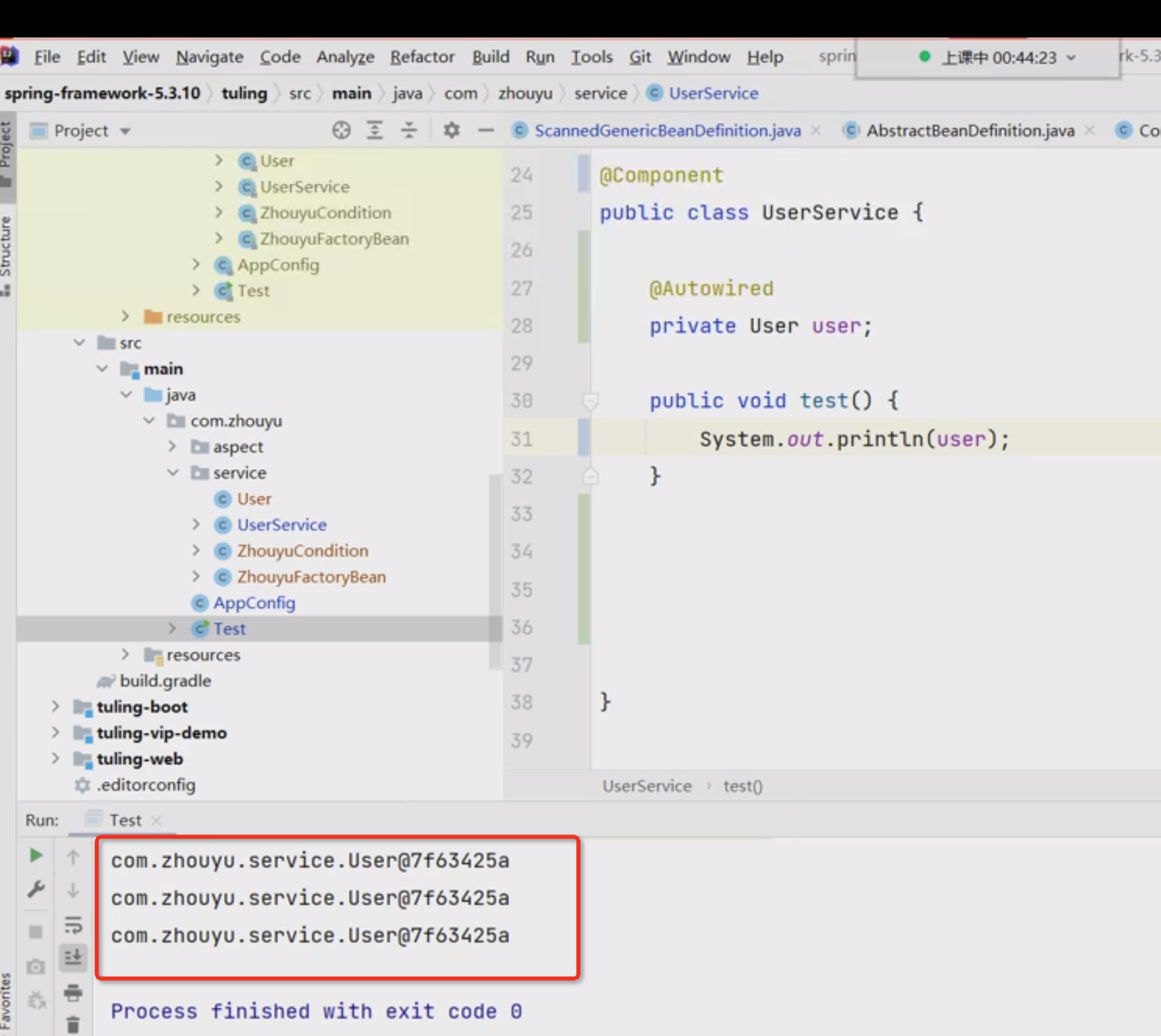 但是都是一样的,原因是UserService是单例,它只会创建一次,