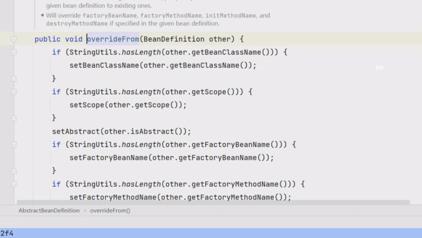 所以这边会用子的BeanDefinition去覆盖,子没有定义就还是延用父亲的