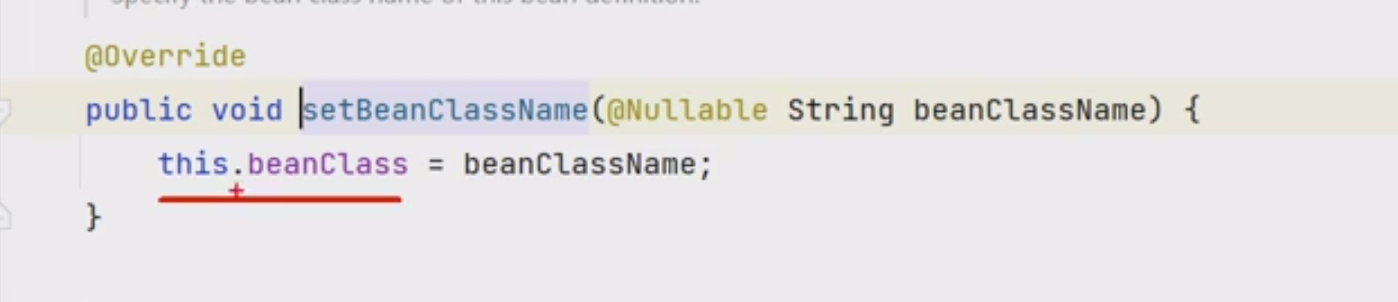 所以一开始赋值给beanClass的是类的名字,只有当要加载这个类的时候,才会去得到这个名字对应的class对象,然后把class这个对象赋值给这个beanClass 属性。所以一开始可能只是名字,后面就是Class对象了。