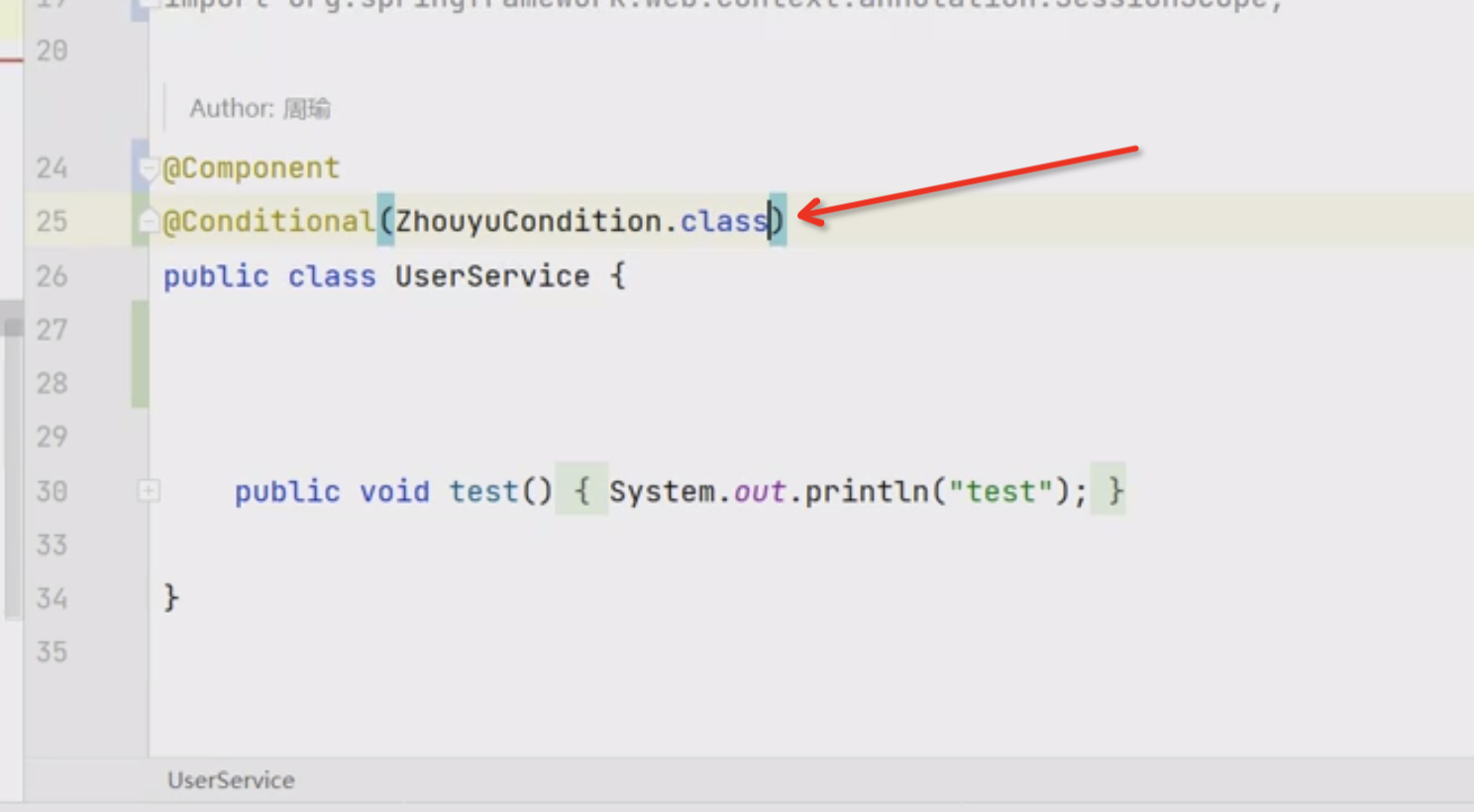 也就是说现在得符合这个条件UserService才能是一个Bean,否则就不是