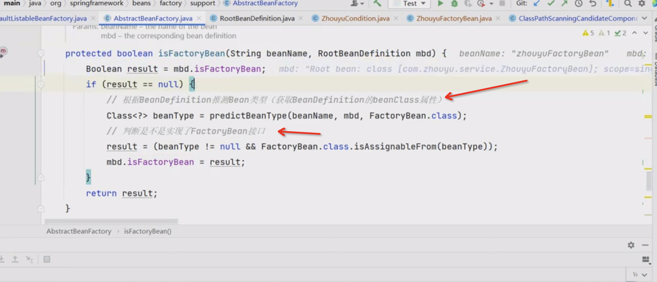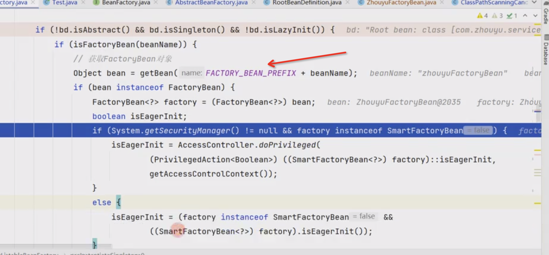 如果拿到了那拿到的就是FactoryBean实现的那个类,返回也肯定是true。