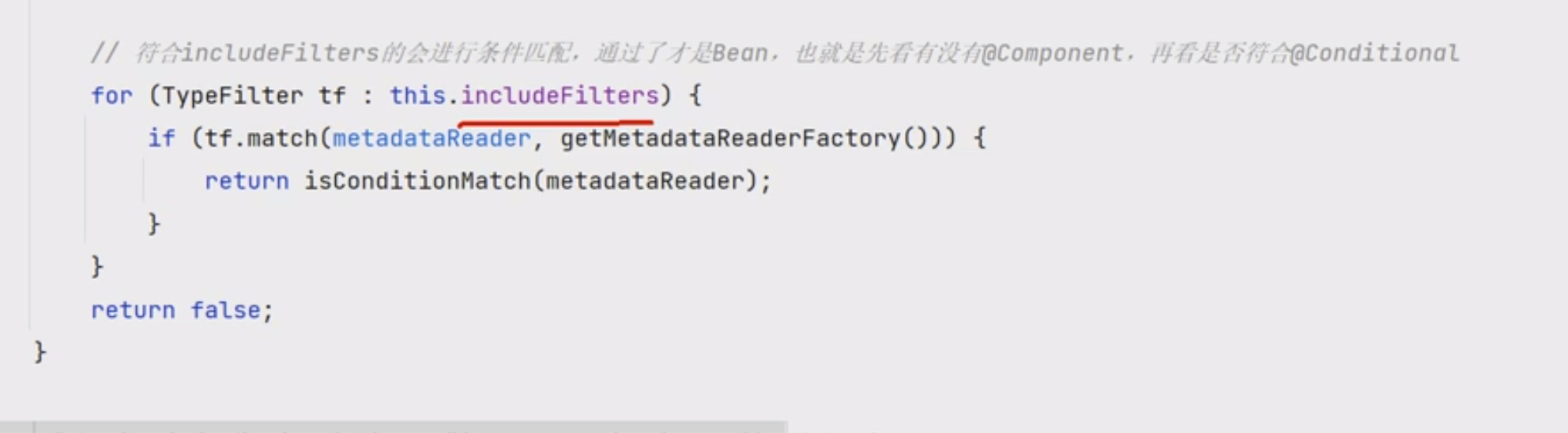 如果当前传的类和排除过滤器匹配了就返回false,就被排除的,不是一个Bean