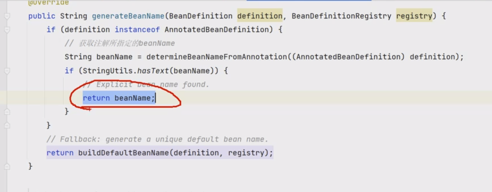 首先解析当前@Component注解有没有指定名字,如果指定了就直接返回了