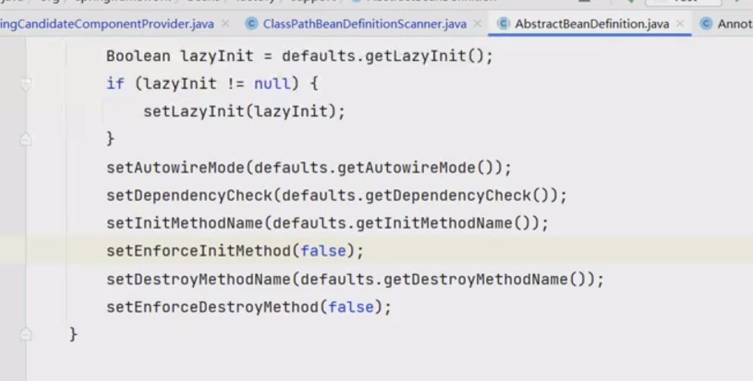 接下来给BeanDefinition赋一些默认值(默认不是懒加载)