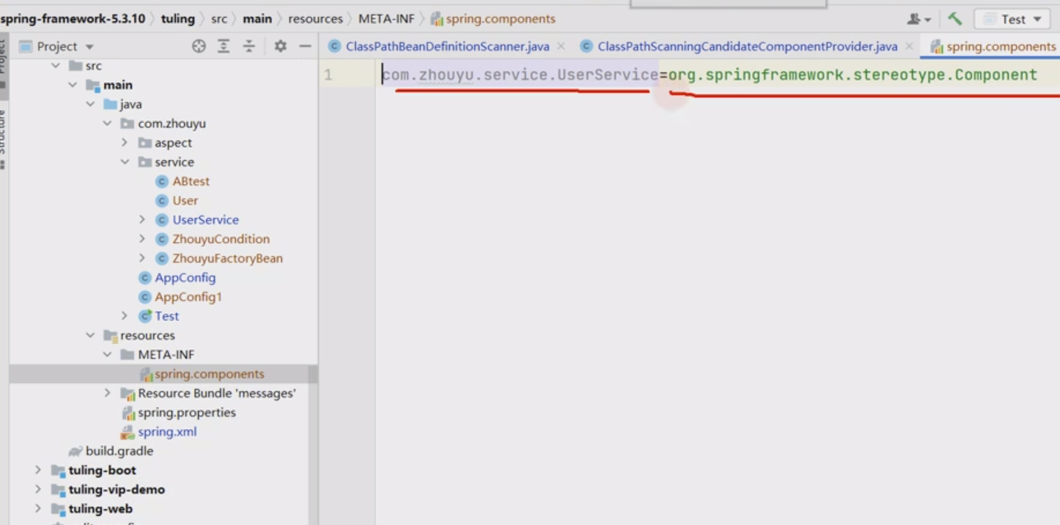1.走的spring.components配置 走的索引,指定类路径和注解,效率可以快一点,不用逐级扫描