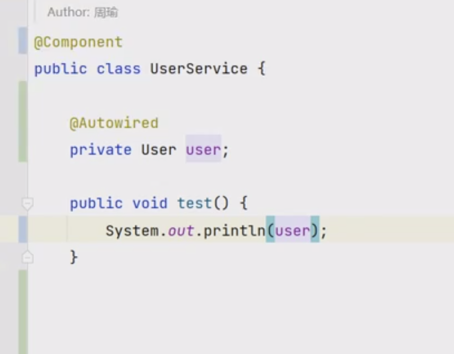 所以只会给User属性赋值一次,main方法里用的是同一个UserService对象,所以就不会变。