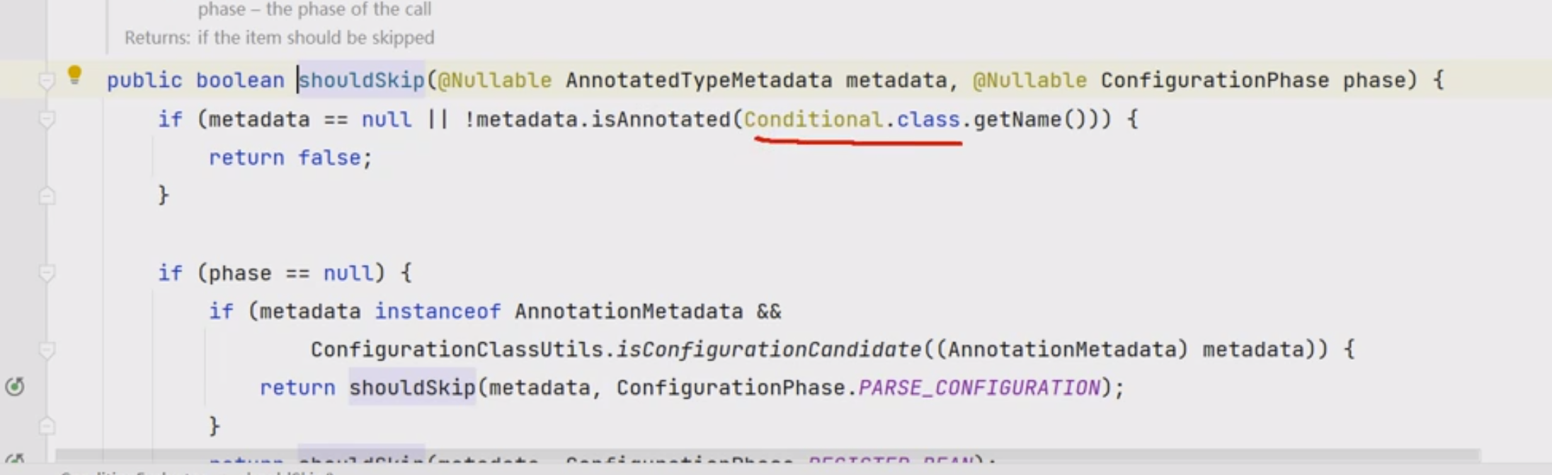 会去判断类上有没有Conditional注解,就会返回false,也就是不要跳过,那就是一个Bean