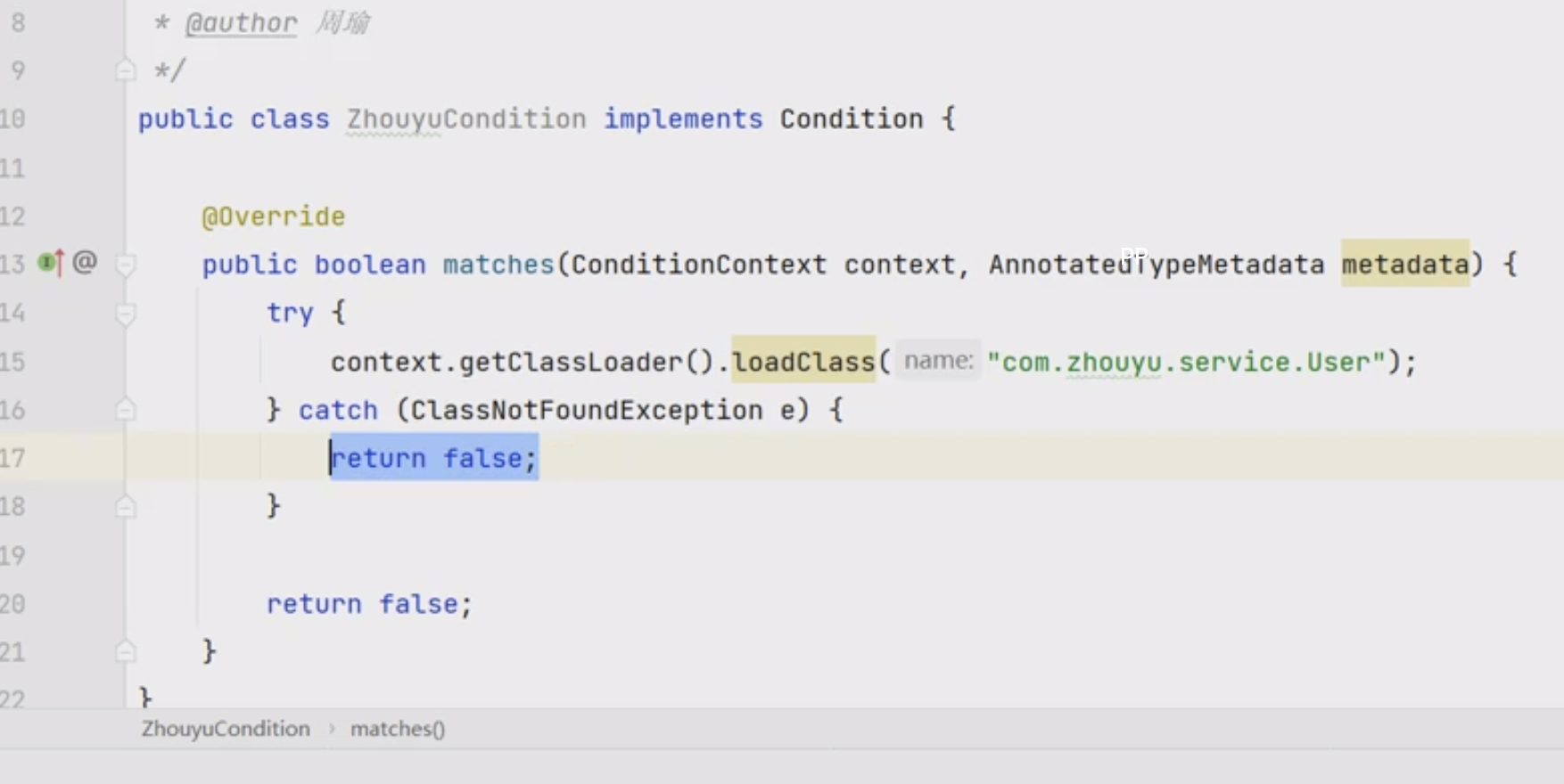 实现Condition接口,如果说Classpath里有User这个类,不存在就返回false,存在返回true