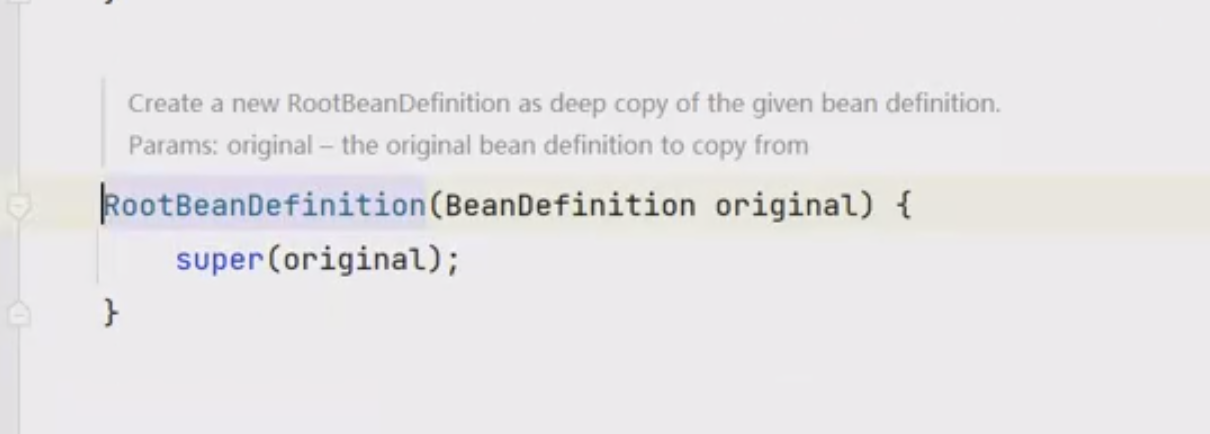 判断当前的bean有没有指定parent,首先会判断自己是不是一个RootBeanDefinition,如果是的话克隆一个(生成一个新的BeanDefinition,属性也会赋值过去给新的),如果本身不是RootBeanDefinition类型那我也会生成一个新的(把当前的BeanDefinition传进去进行属性的copy)
