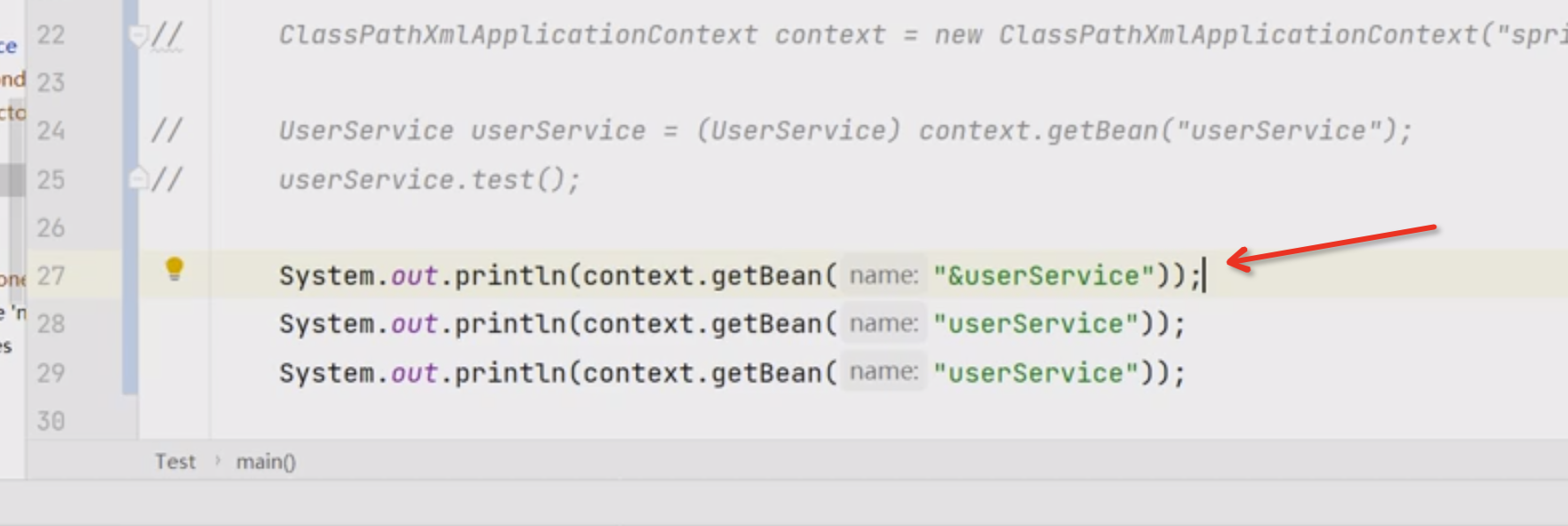 如果传的是带"&"名字,希望得到的是xxxFactoryBean对象,如果不带“&”则希望是getObject()方法返回的对象