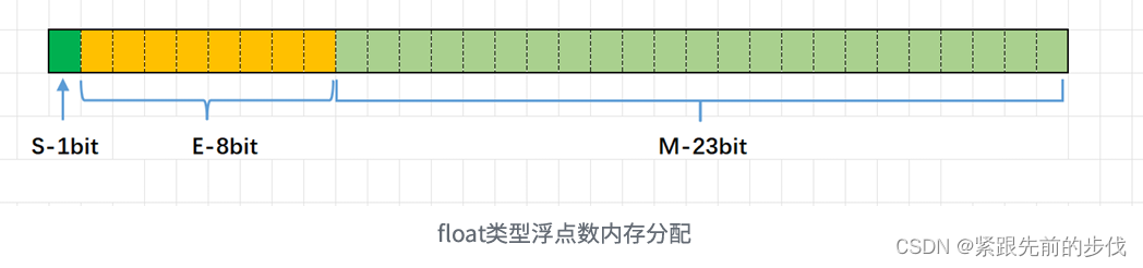 对于32位的浮点数,最⾼的1位存储符号位S,接着的8位存储指数E,剩下的23位存储有效数字M