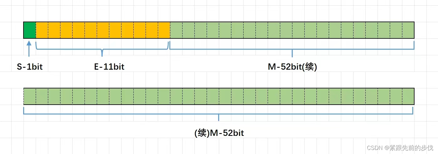 对于64位的浮点数,最⾼的1位存储符号位S,接着的11位存储指数E,剩下的52位存储有效数字M