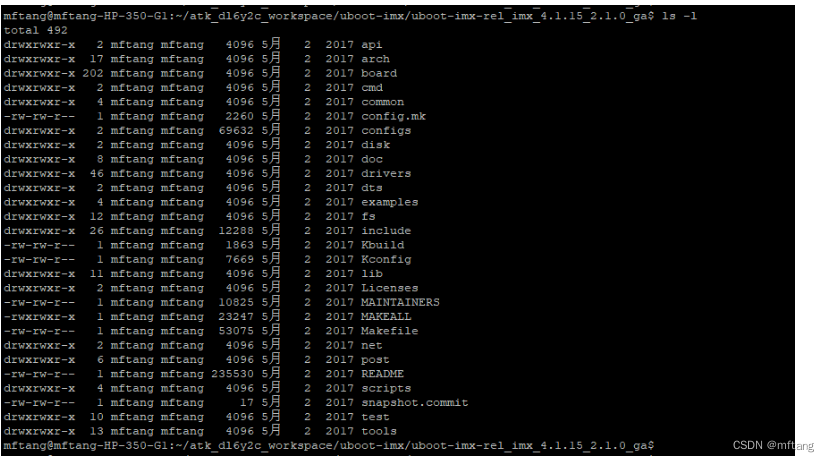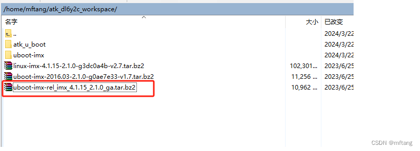NXP官方提供的u-boot版本为:uboot-imx-rel_imx_4.1.15_2.1.0_ga.tar.bz2,将该文件放到ubuntu上,然后解压代码。