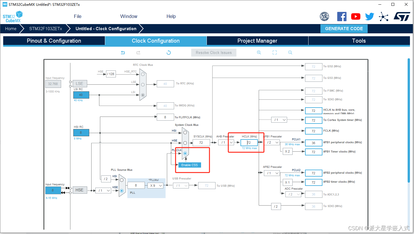 关于时钟树,大家可以去看正点原子的视频很详细。