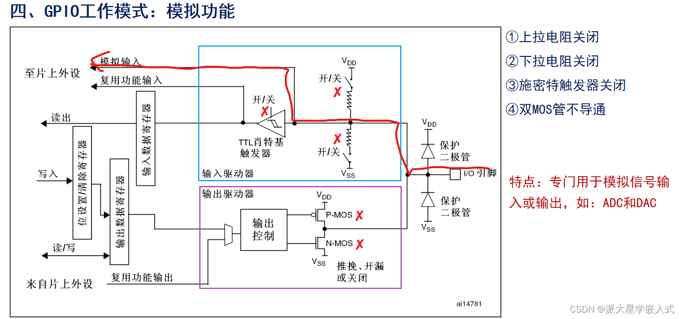 上拉电阻和下拉电阻,TTL都关闭 即模拟输入