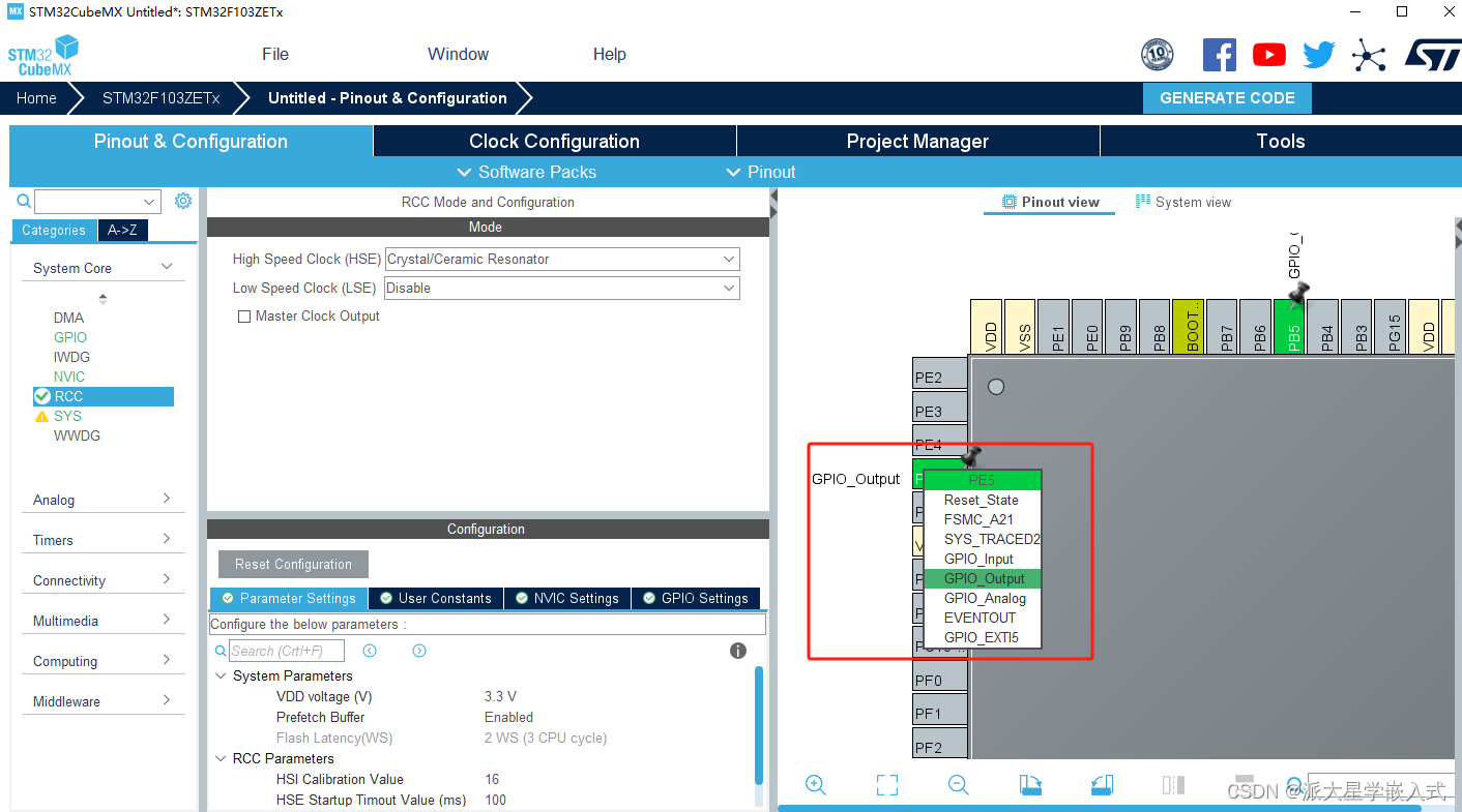 HAL_GPIO_Init(GPIOE, &GPIO_InitStruct);//初始化GPIO