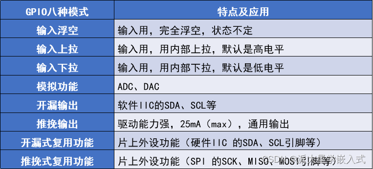 这里我们总结一下GPIO的八种模式 又可以分为输出和输入