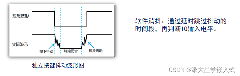 这里大家想一下,按键是输入还是输出,按键按下得到电平变化,是向单片机输入信号的,所以配置为输入 (还有一种说法,按键按下单片机是需要采集信号的,所以是像单片机输入)
