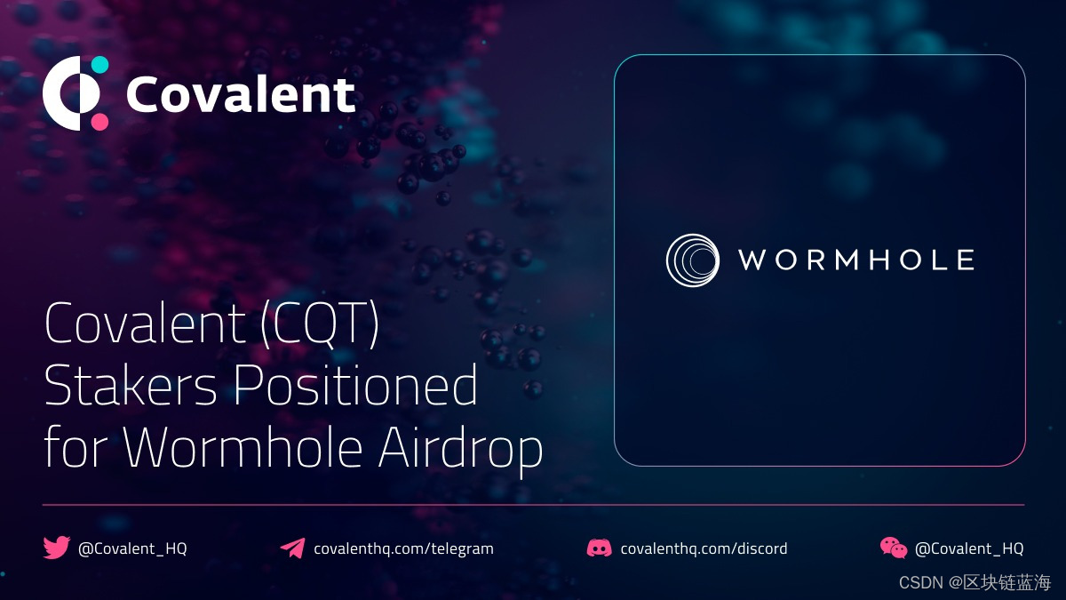 随着 Covalent Network(CQT)通过社区空投来实现生态系统垂直整合的愿景,已经质押的CQT 持有者可以通过利用 Wormhole 的 Portal Bridge 获得资格。这次战略性空投,代表着 Covalent Network(CQT)向建立一个更加互联和去中心化生态系统迈出的重要一步,突显了其致力于促进安全、去中心化和开源技术的协作和整合。