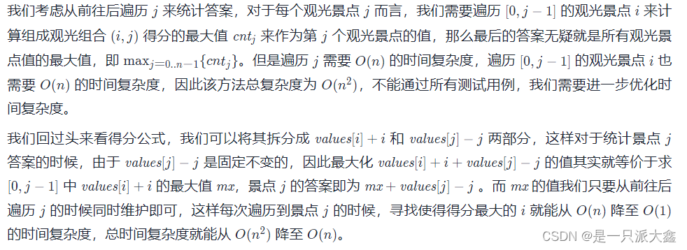 当我们枚举到第 i 个景点时,我们只需知道第 i 个景点之前景点的最大值