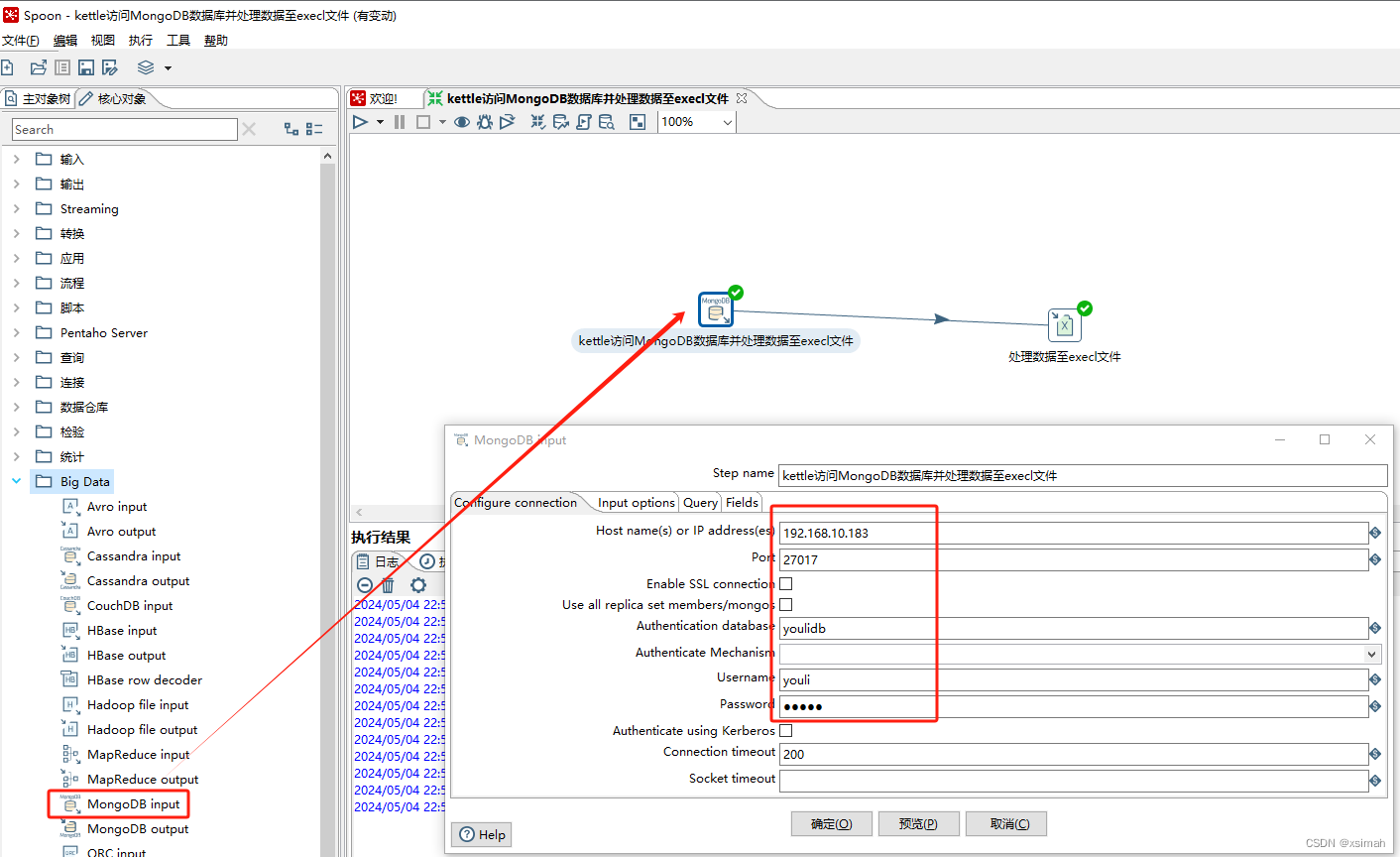 【实操视频,辅助实操学习,欢迎点赞、关注,跪谢一键三连!】【kettle007】kettle访问MongoDB数据库并处理数据至execl文件(已更新)