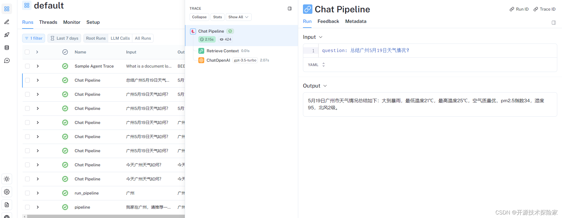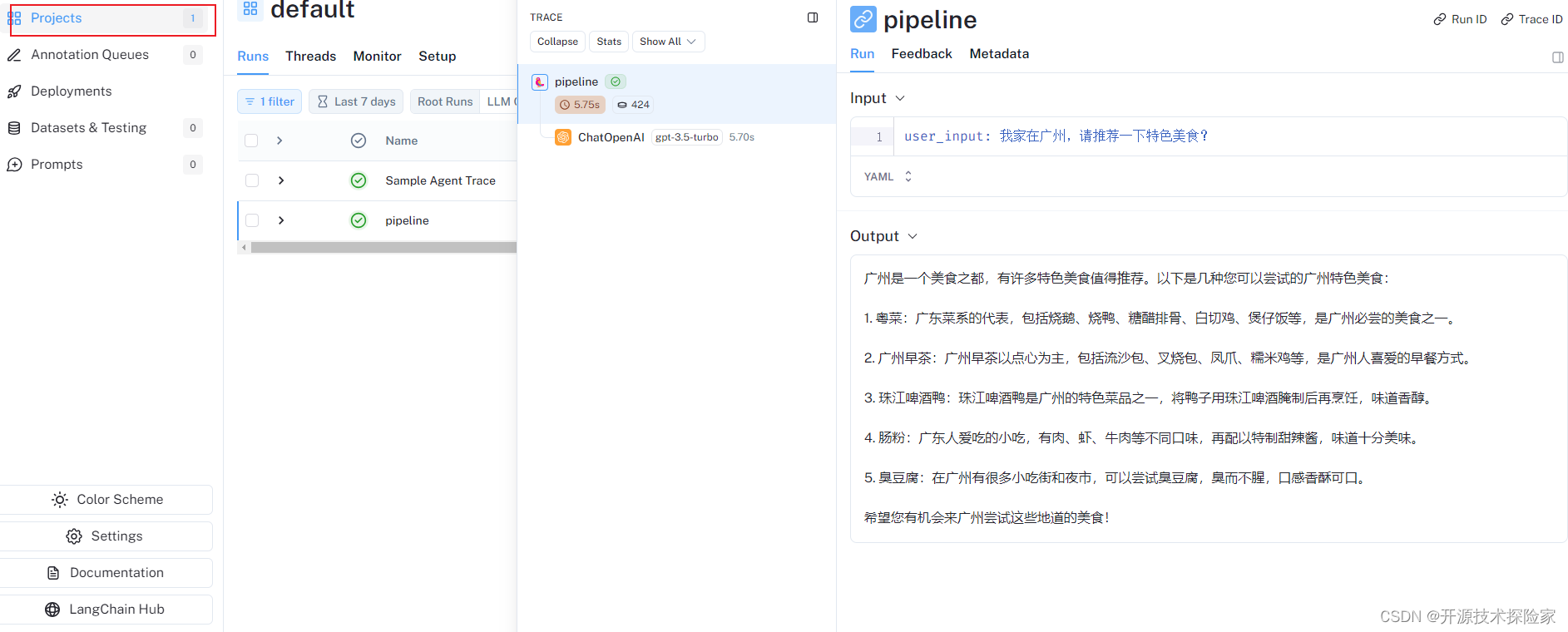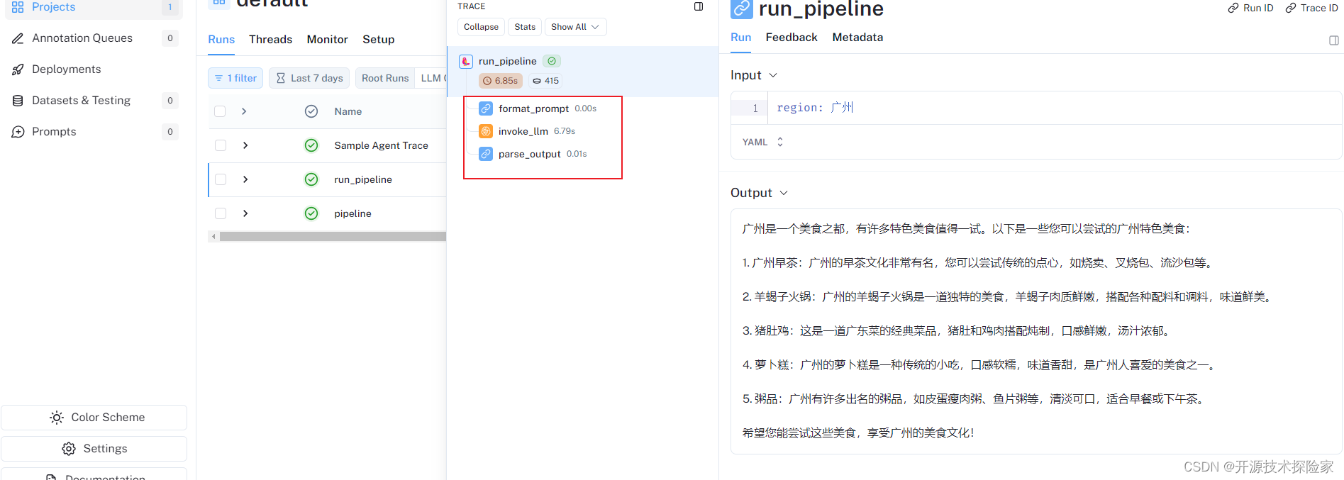- 调试与测试:通过记录langchain构建的大模型应用的中间过程,开发者可以更好地调整提示词等中间过程,优化模型响应。