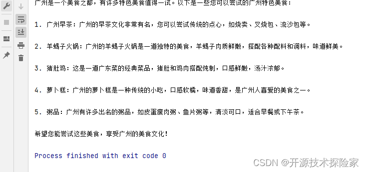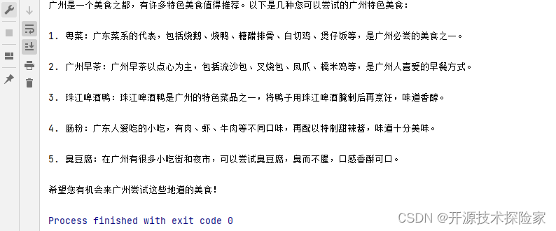 print(pipeline("我家在广州,请推荐一下特色美食?"))